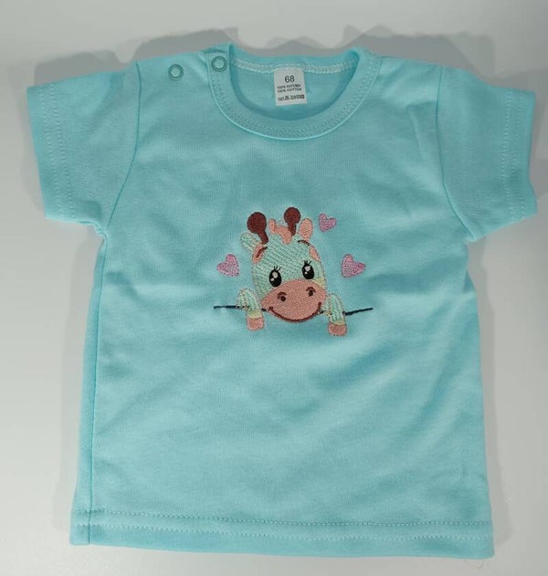 Shirt blauw met borduring Giraffe ( ander kleur shirt mogelijk)
