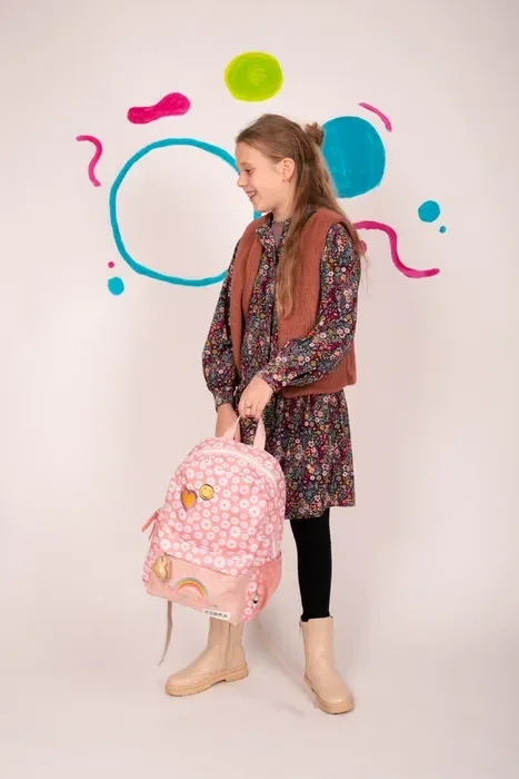 Kijk eens naar deze té leuke rugzak! De tas heeft een lekker vrolijk printje wat 'm helemaal leuk maakt. De rugzak is ideaal voor jouw kind op school. Het hoofdvak van de rugzak is ruim en heeft een handig achtervak. Op de voorzijde van de tas bevindt zich een voorvakje met twee leuke hartjes. De rugzak kan gedragen worden aan de verstelbare schouderbanden óf aan het enkel handvat. Wordt jij al helemaal happy van deze mooie rugzak?